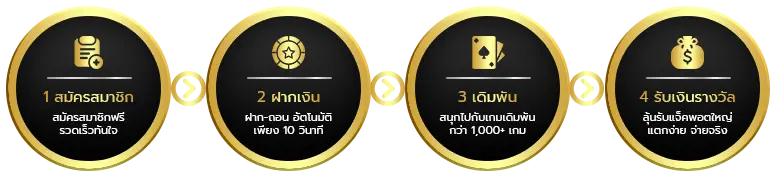 ตอบ : - สมัครสมาชิกผ่านหน้าเว็บไซต์ - ฝากเงินเข้าระบบขั้นต่ำ 100 บาท - เลือกเกมที่ต้องการเล่น - กดเข้าเล่นได้ทันทีผ่านเว็บหรือแอพ - ถอนเงินได้ตลอด 24 ชั่วโมง